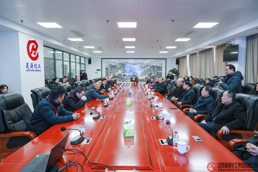 On January 24th, during the annual executive council meeting of the Anhui Professional Managers Association, Comrade Ren Haishen, former standing committee member of the Anhui Provincial Committee of the Communist Party of China, former executive vice governor, and former president of the Provincial Professional Managers Association, led an inspection team to visit Haoyuan Company for research and guidance. About 50 industry elites, including the president, vice president, and executive directors of the Provincial Vocational Association, as well as the chairman and general manager of outstanding enterprises and listed companies in the province, gathered together to exchange experiences in enterprise transformation and development. Zhang Haisheng, Deputy General Manager of Haoyuan Company, accompanied and provided a detailed introduction to the company's operations and development.