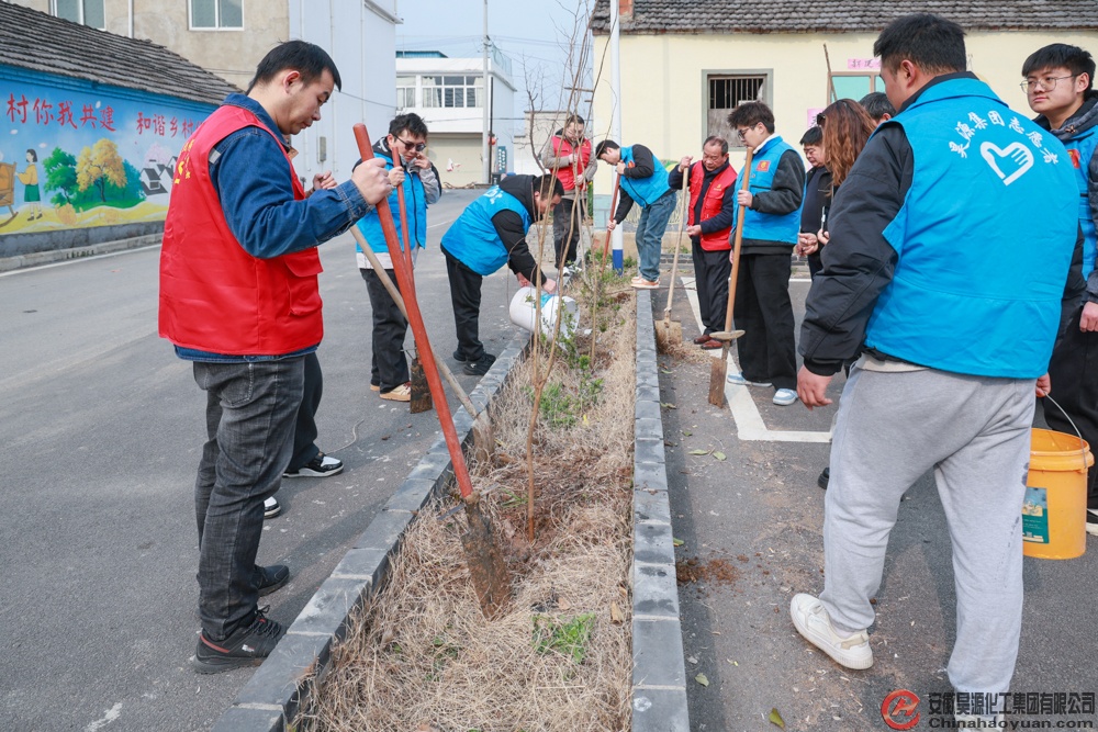 The spring breeze turns green, and the plants and trees begin to sprout. On March 11th, the company's party committee and youth league committee organized more than 20 party members and youth league members to rush to Banqiao Village in Tiaohua Town, a targeted assistance village, to carry out a voluntary tree planting activity with the theme of "ecological assistance adds new greenery, rural revitalization displays grand plans". Through practical actions, they added new greenery to the rural areas and planted a strong ecological foundation.