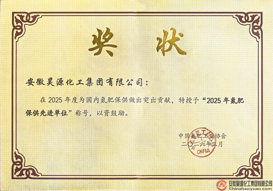 At the meeting, Anhui Haoyuan Chemical Group Co., Ltd. was awarded the honorary title of "exemplary organization of Nitrogen Fertilizer Supply Guarantee in 2025" by virtue of its outstanding contribution to the work of ensuring supply and stabilizing price of nitrogen fertilizer in 2025. Honor is a high recognition of Haoyuan Company's firm implementation of the national fertilizer supply and price stability policy, proactive practice of corporate social responsibility, and full protection of national food security. It also highlights Haoyuan Company's core position and responsibility in the national nitrogen fertilizer industry supply system.