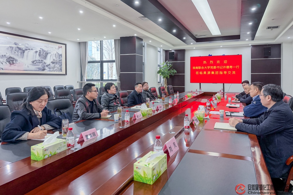On March 16th, Xu Deshou, Secretary of the Party Committee of Huainan Union University, and Huang Wei, Vice President, visited Haoyuan for inspection. The two sides had in-depth exchanges on school enterprise cooperation and industry education integration. Vice General Manager Wu Zhenhan, Assistant General Manager Pan Jiacheng, and Director of Enterprise Management Zhang Ming accompanied the company